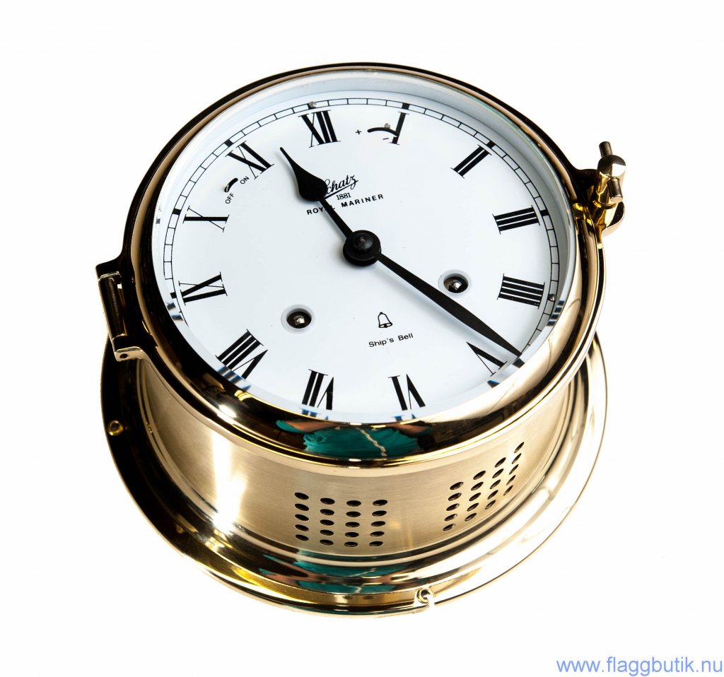 Mekanisk klocka i mässing som slår glas.