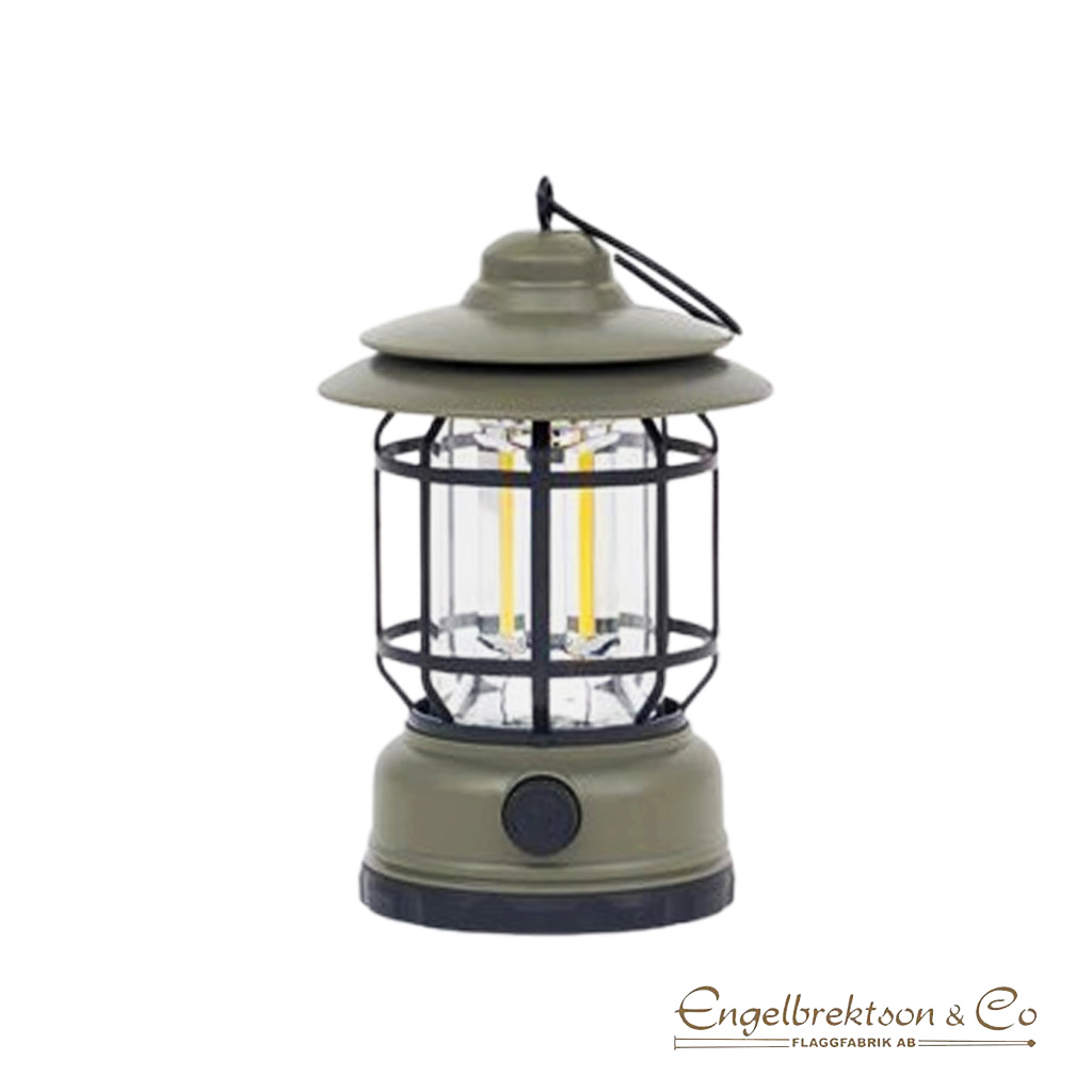 Lantern Led Vintage is a practical green-gray lantern with a black grille and hook with a dimmable light source. You can get plenty of light when you need to read in the dark, for example, or for more ambient lighting. With the practical hook, it can be hung on a tree branch at the campsite or placed on a table on the balcony or veranda.