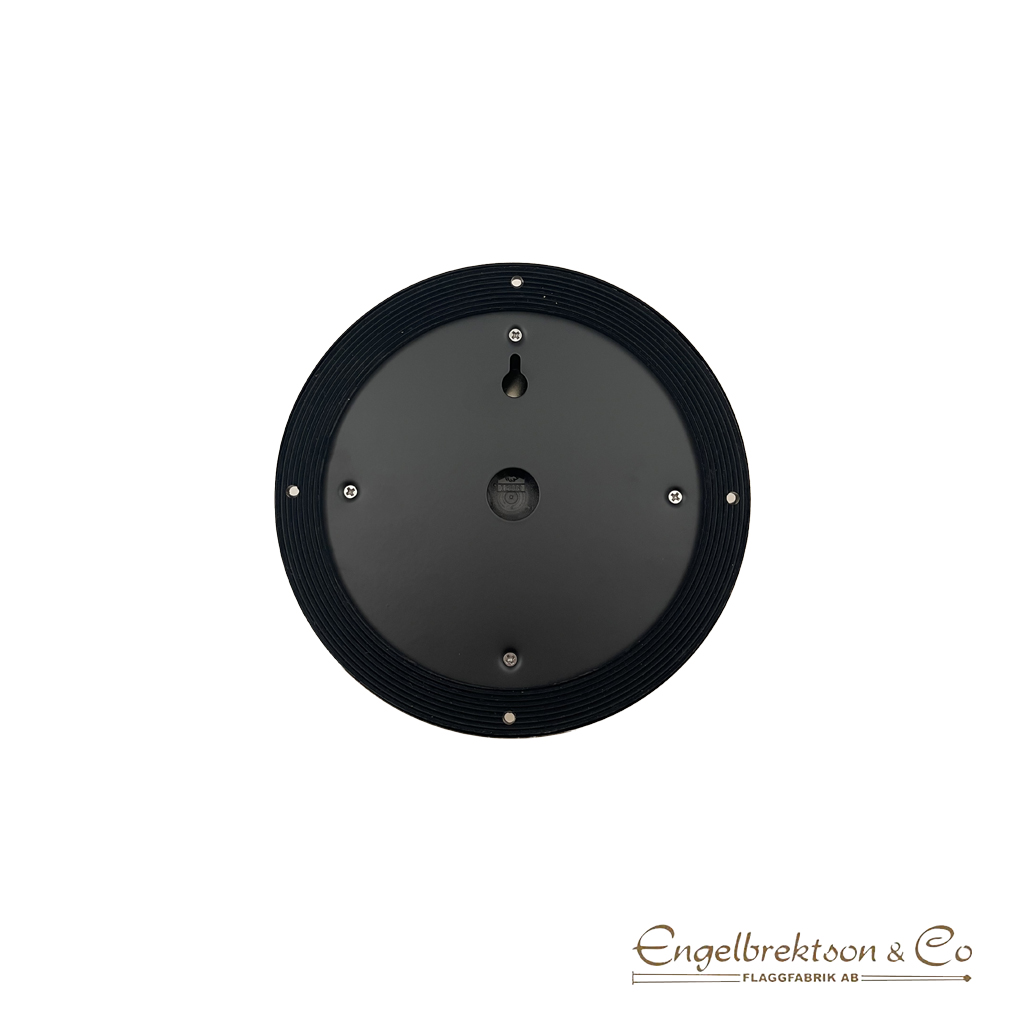 Den vita urtavlan med tydliga romerska siffror gör det lätt att läsa av tiden och ger ett traditionellt uttryck som passar både maritima och klassiska miljöer. Öppningsbar lucka till urtavlan.