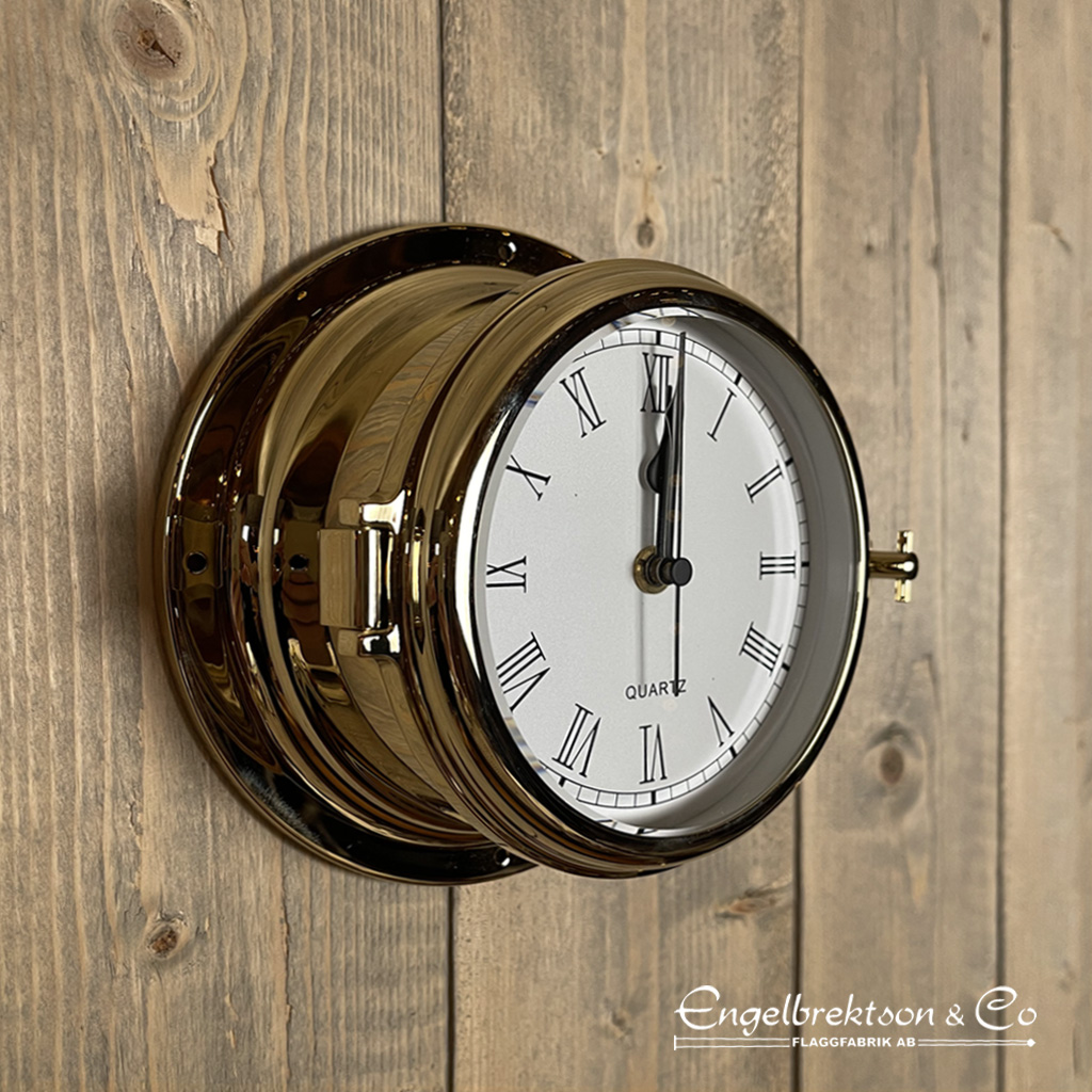 Klassisk klocka i polerad mässing.
