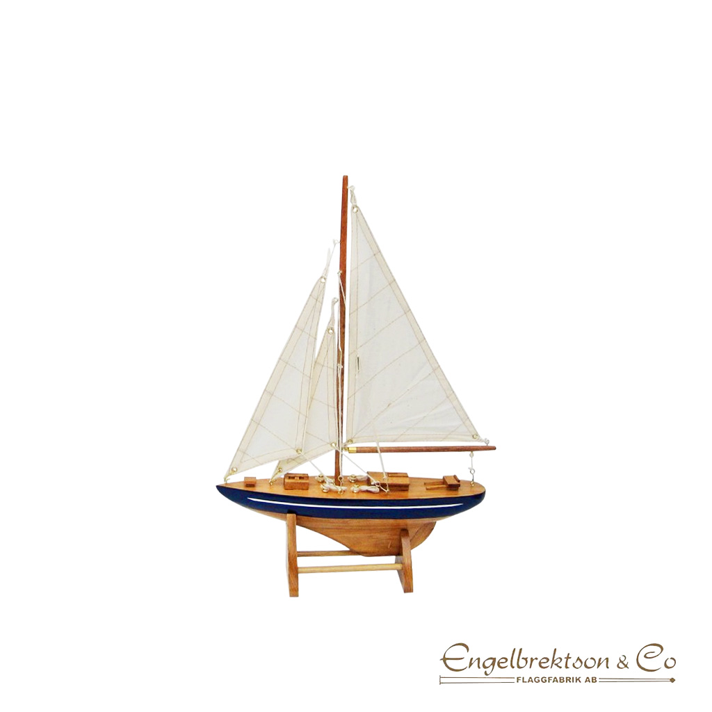 Modellbåt Segelbåt Blå/natur 36cm i trä.